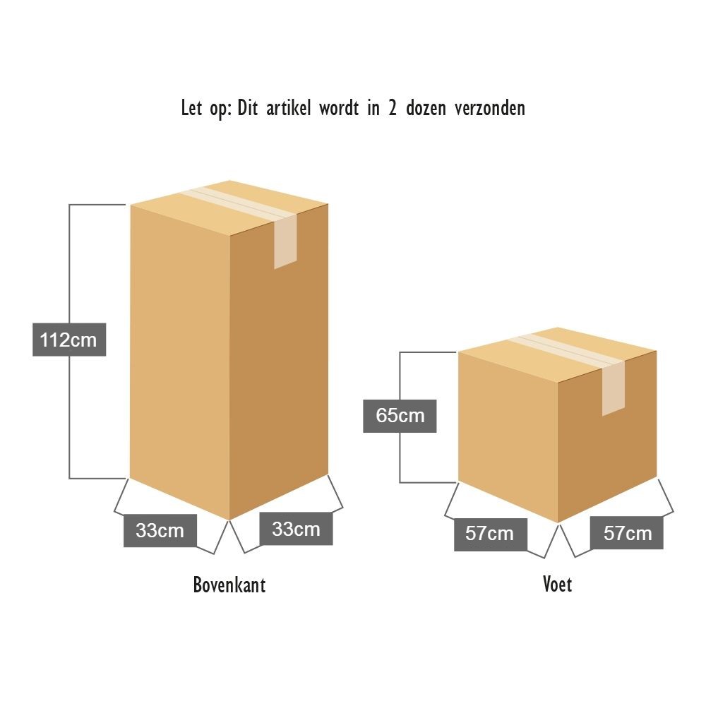 - Totaal gewicht: leeg 15 kg, gevuld maximaal ≈ 150 kg
